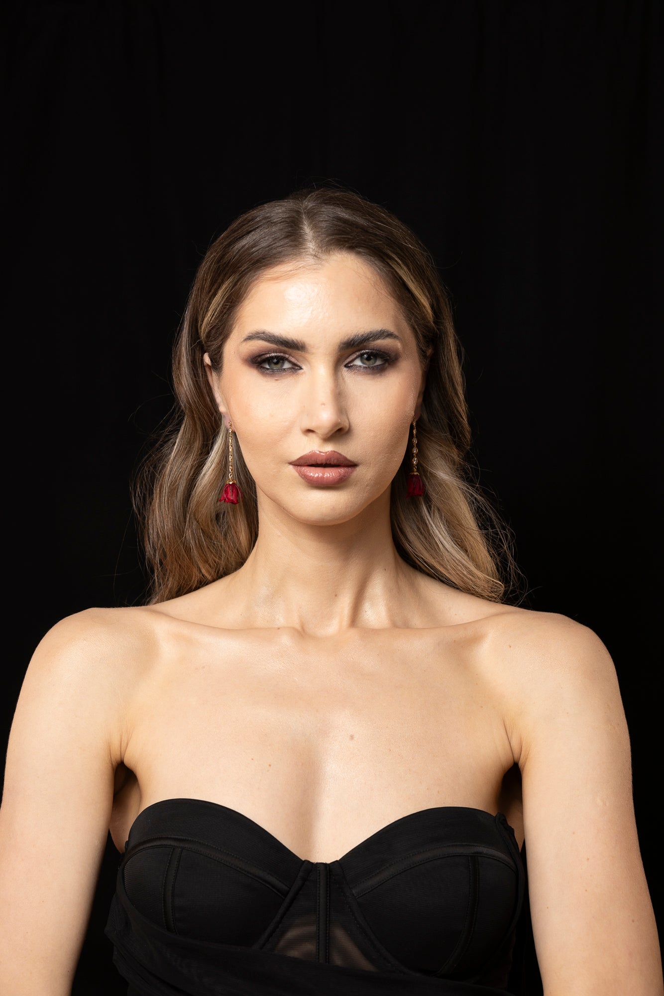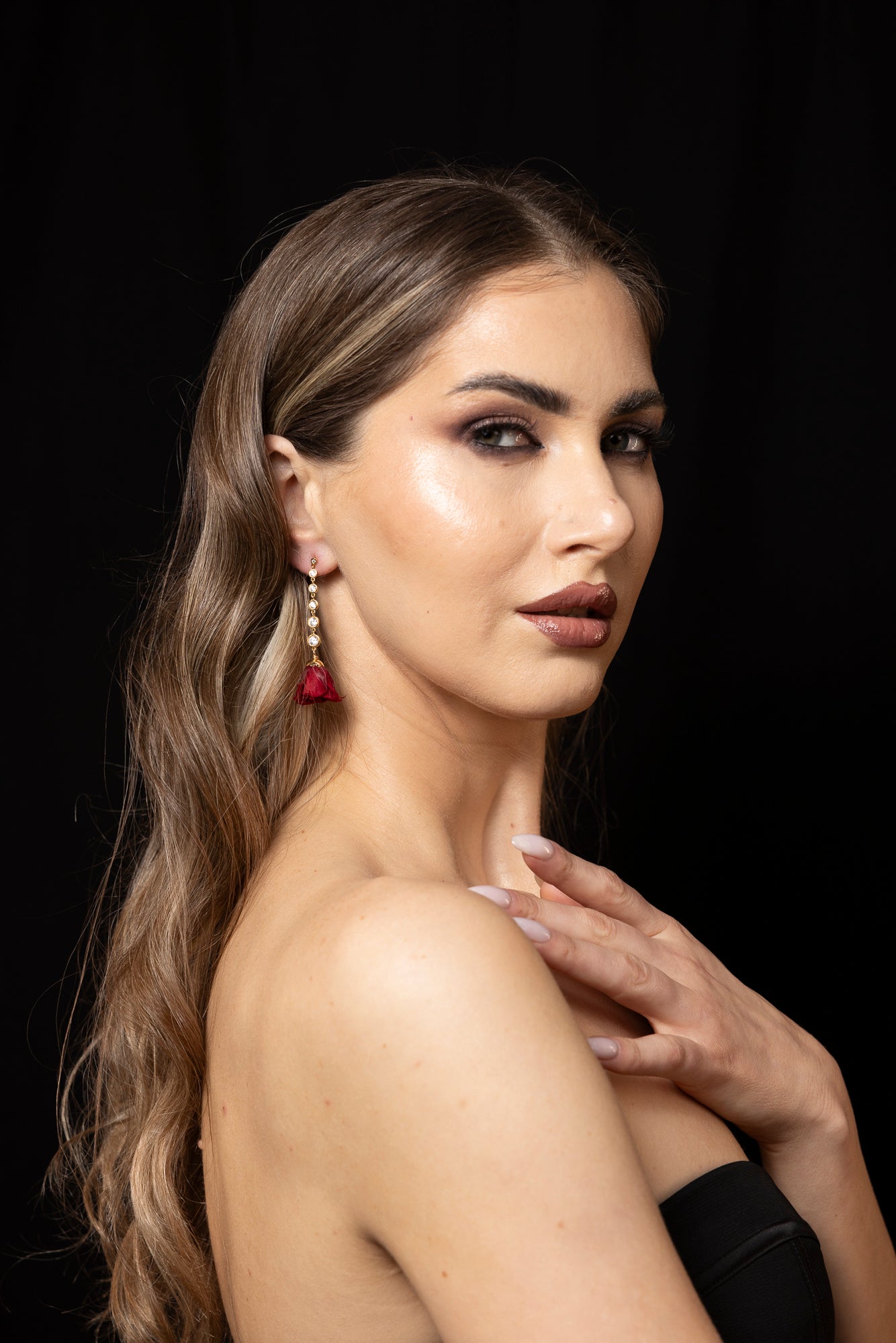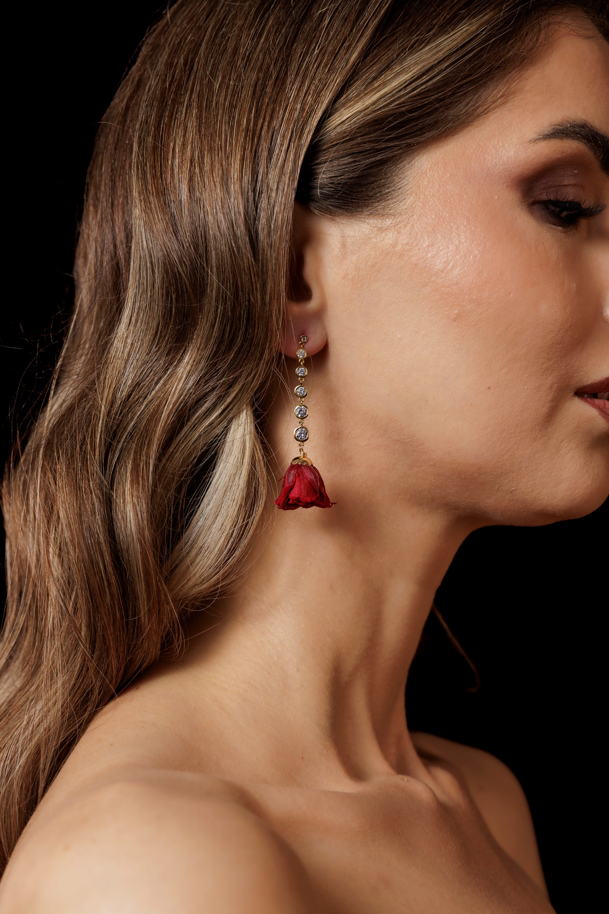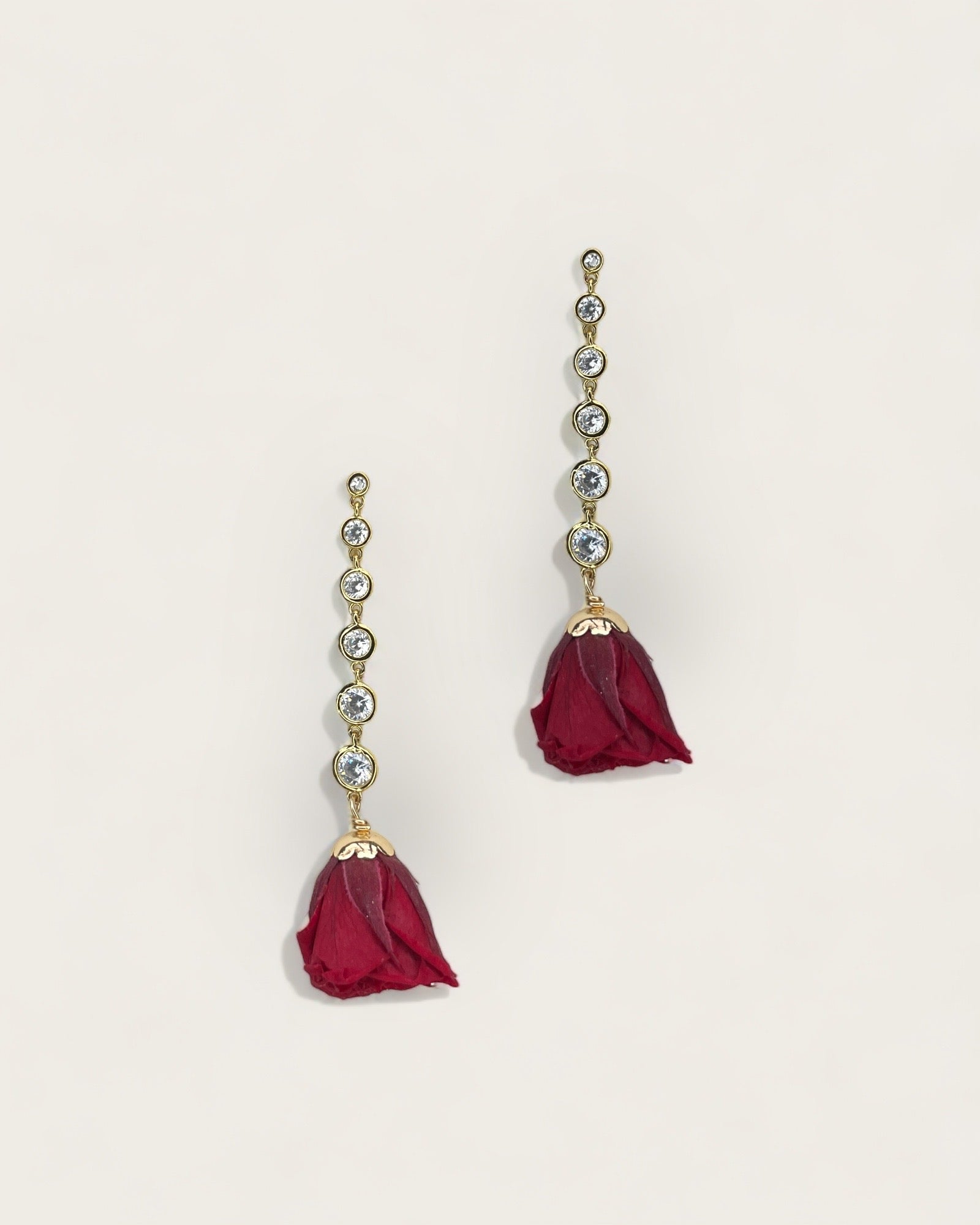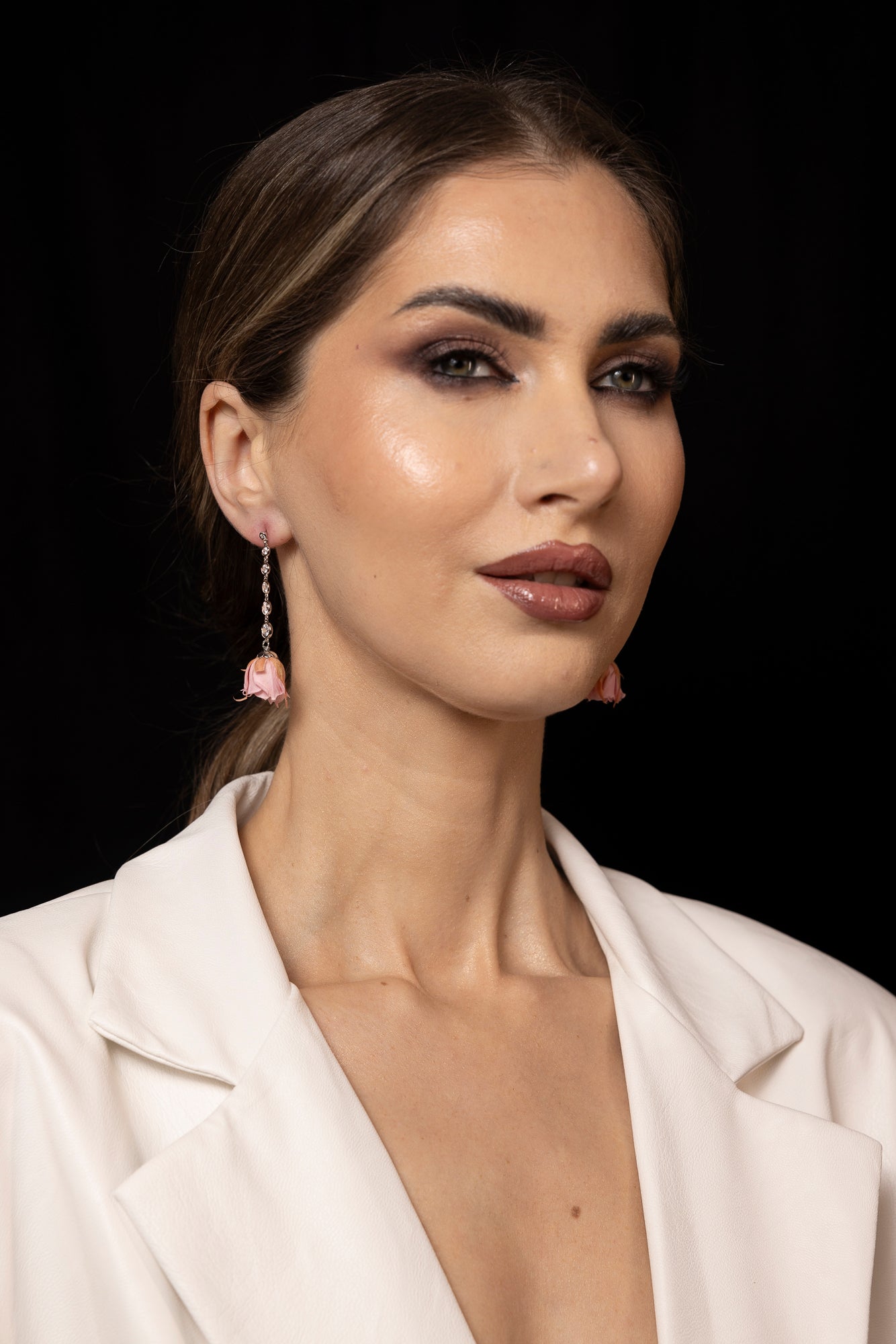 The perfect addition to your little black dress! Style these earrings for a special night out with our deeper rose colors and fun flirty looks with our lighter rose colors. Roses are shown in wine and baby pink.